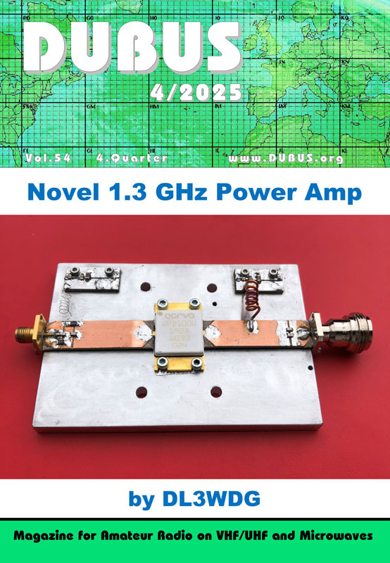 Technical Articles A 200W+ GaN PA for 1296 MHz by Charlie Suckling, DL3WDG Almost 30 Years of VE7BQH Antenna Tables by Hartmut Klüver, DG7YBN Image Rejection Improvement and LO Nulling on IQ Mixers by Luis Cupido, CT1DMK TinyPLL - locks without a PLL chip by Daniel Uppström, SM6VFZ A 47 GHz EME Setup by Ivan de Cesaris, IZ0JNY 10 GHz Booster for IC-905 - Project Follow-Up by Mauro Ottaviani, IZ1OTT Bragg effect: Look left and right! by Nils Schiffhauer, DK8OK