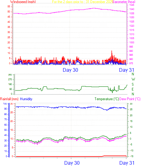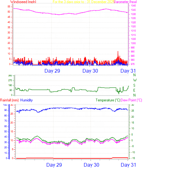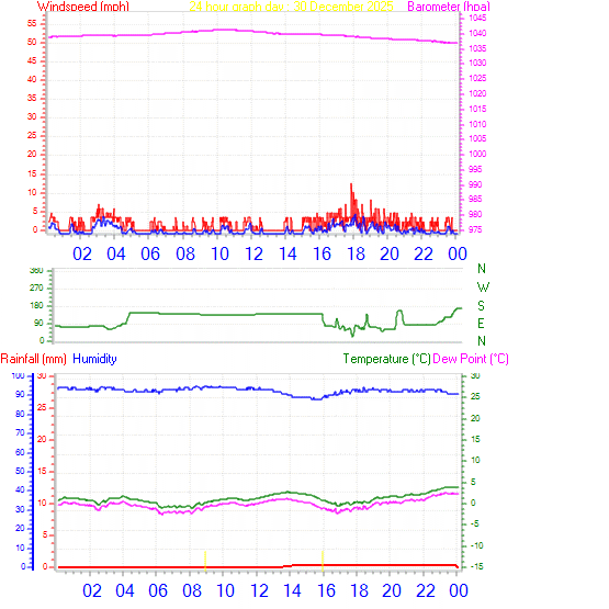 | Humidity | 93 %, Humidex 0.1°C | Barometer corrected to msl | 1038 hPa |